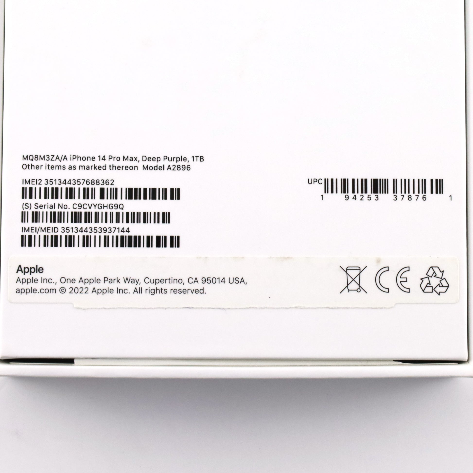 B+ランク iPhone 14 Pro Max 1TB DeepPurple A2896 MQ8M3ZA/A 香港版【90日保証】