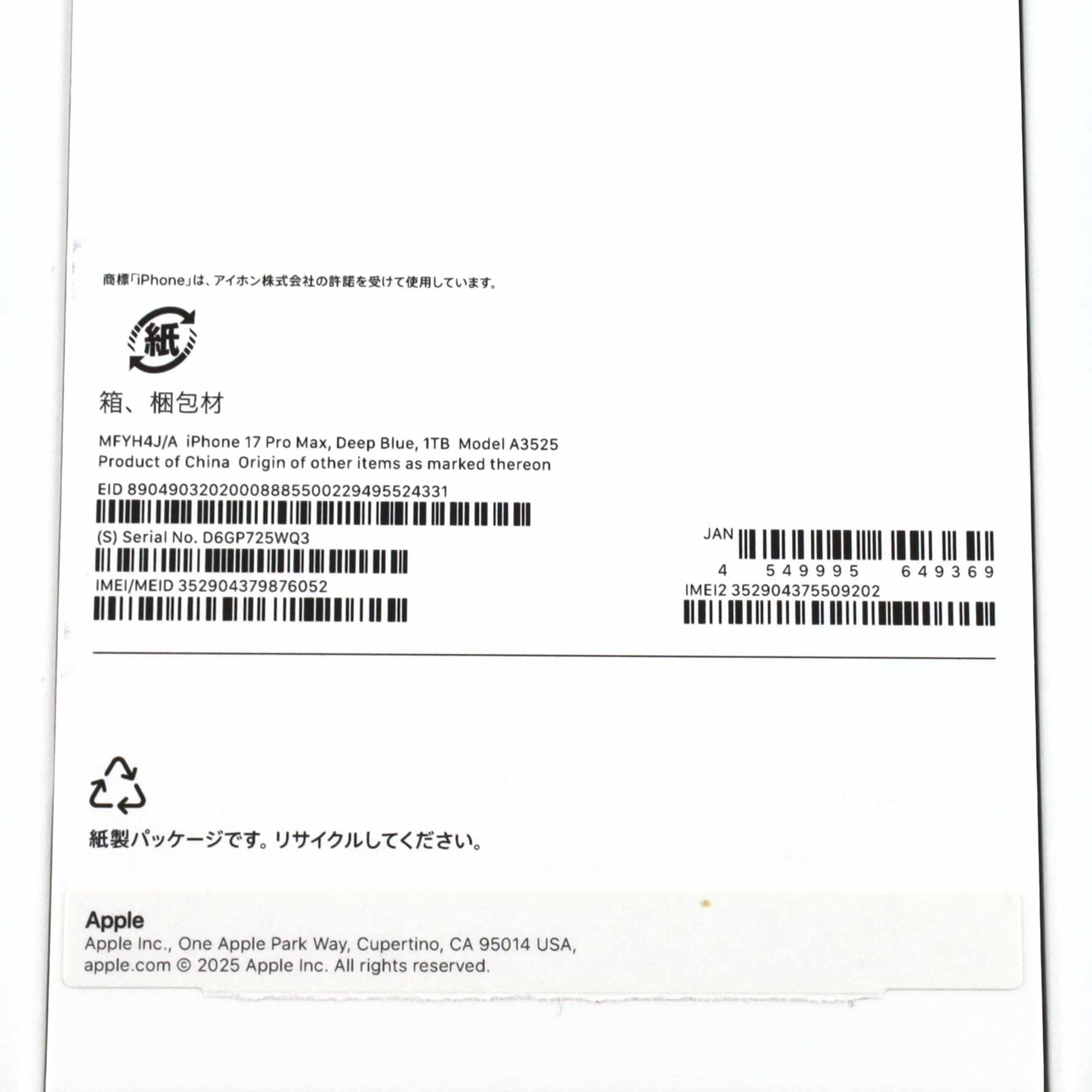 Aランク iPhone 17 Pro Max 1TB DeepBlue A3525 MFYH4J/A 国内版【90日保証】