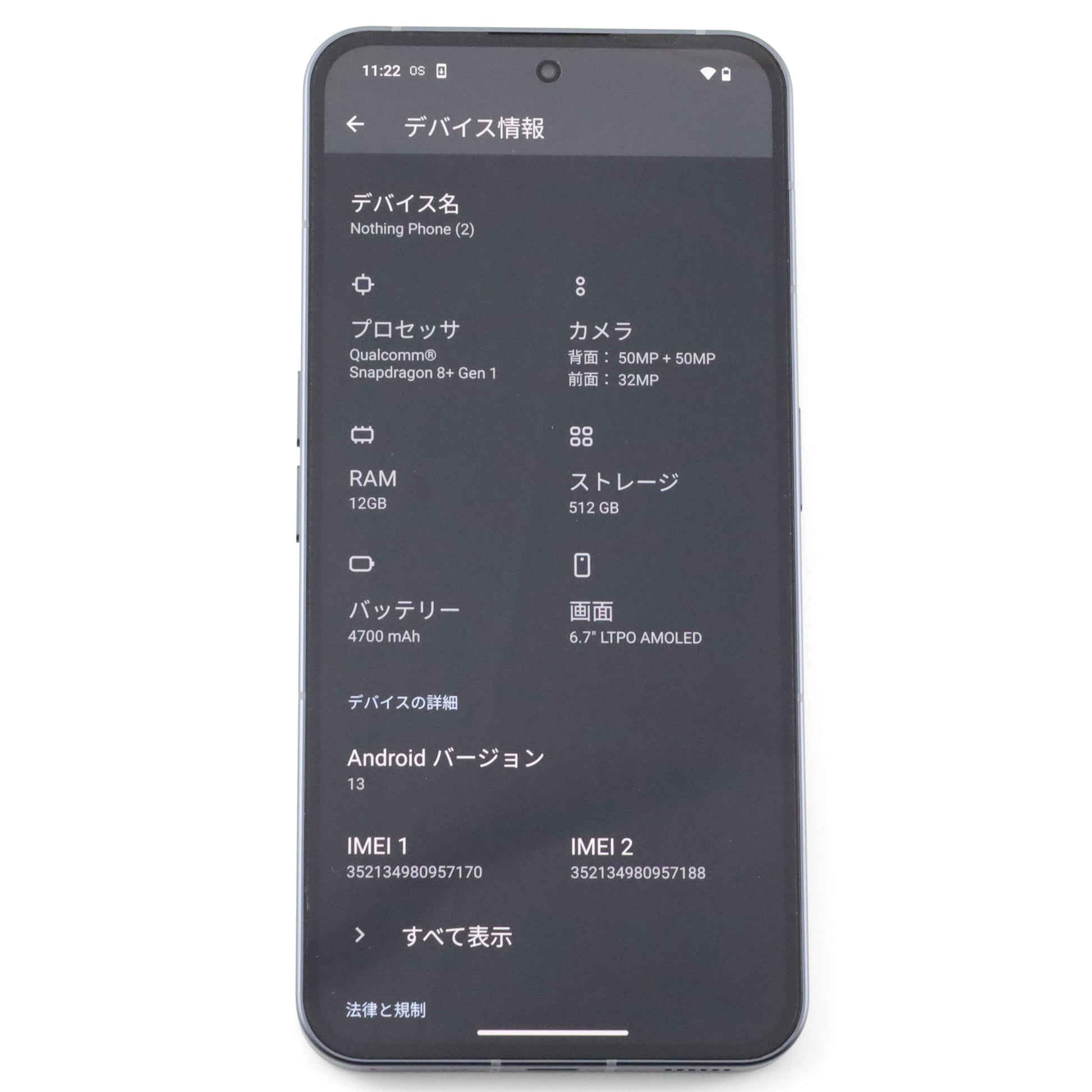A-ランク Nothing Phone(2) 12/512GB DrakGrey A065 国内版【90日保証】