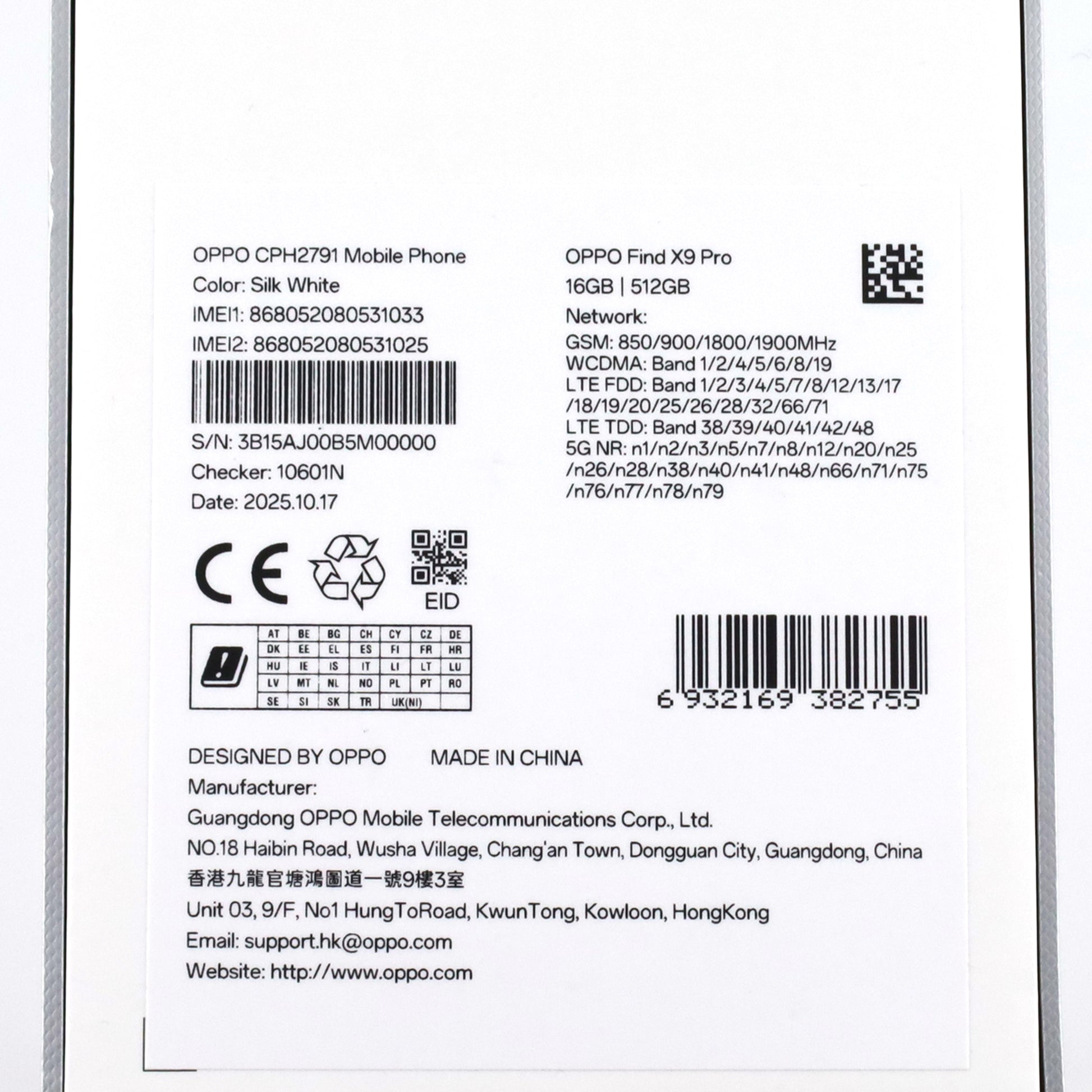 A-ランク OPPO Find X9 Pro 16/512GB SilkWhite CPH2791 グローバル版【90日保証】
