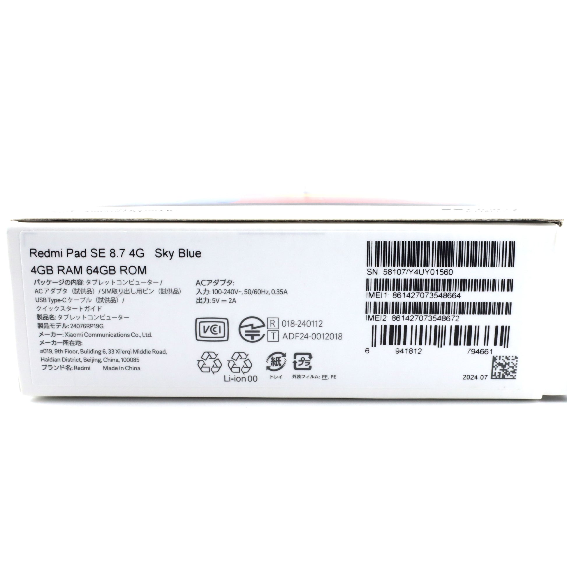 C+ランク Redmi Pad SE 8.7 4/64GB SkyBlue 24076RP19G 国内Simフリー版【90日保証】